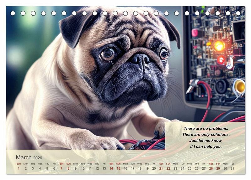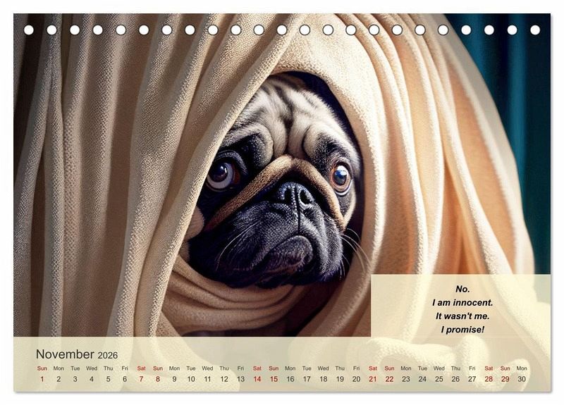 Dive into a year of laughter and joy with our Great Fun for Pug Lovers annual calendar. Each month unveils a delightful scene featuring adorable pug dogs in the most hilarious positions, paired with witty and humorous quotes that capture the essence of pug charm. Perfect for brightening up any room, this ai generated calendar is a must have for pug enthusiasts and animal lovers alike. Whether you're looking for the ideal gift for a pug owner or just want to spread some cheer, this calendar promises to bring a smile to everyone's face. Get ready to enjoy a year filled with laughter, love, and pugs.