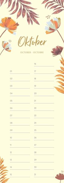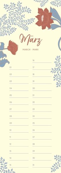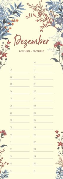 Immerwährend: Jahresunabhängiger Kalender ideal für wiederkehrende Ereignisse wie Geburtstage, Jubiläen und besondere Anlässe Elegantes Blumendesign: Zarte, florale Illustrationen, die jeden Raum optisch aufwerten Praktisches Format: ca. 14,8×42 cm perfekt für Wandflächen in Küche, Büro oder Flur Nachhaltige Qualität: Gedruckt auf umweltfreundlichem Papier ressourcenschonend und hochwertig verarbeitet Platz für Notizen: Übersichtliche Monatsaufteilung mit Raum für Namen, Daten und persönliche Einträge