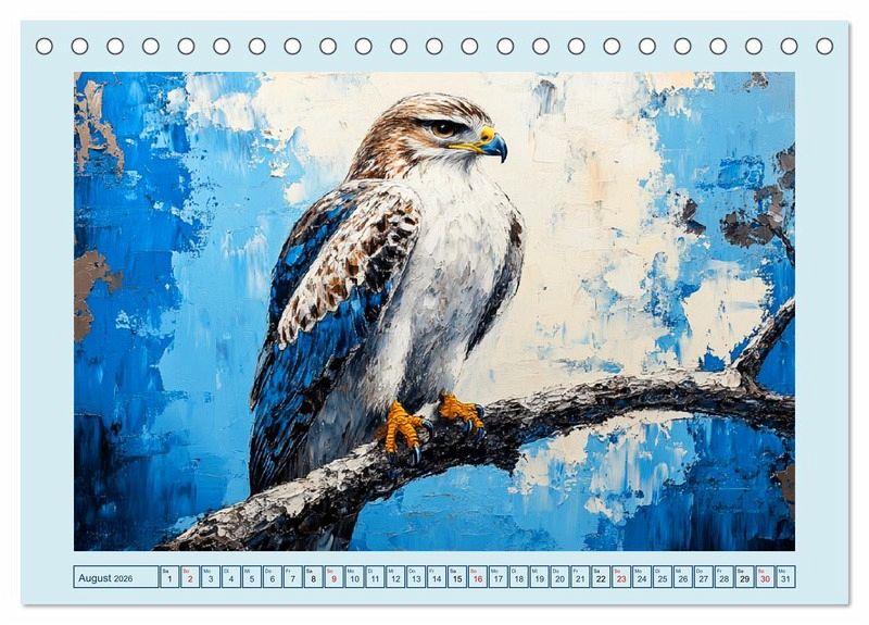 Dieser schöne Kalender fängt die Schönheit und Mystik von Greifvögeln ein. Jede Seite zeigt ein mit Hilfe von KI generiertes Ölgemälde, das Vögel in verschiedenen Szenen festhält - im Flug, auf Ästen oder als Portrait. Die Verbindung von Technologie und klassischer Kunst lässt die Bilder lebendig wirken, als wären sie von Hand gemalt. Dieser Kalender ist eine Hommage an die faszinierende Welt der Raubvögel und die künstlerischen Möglichkeiten der KI.