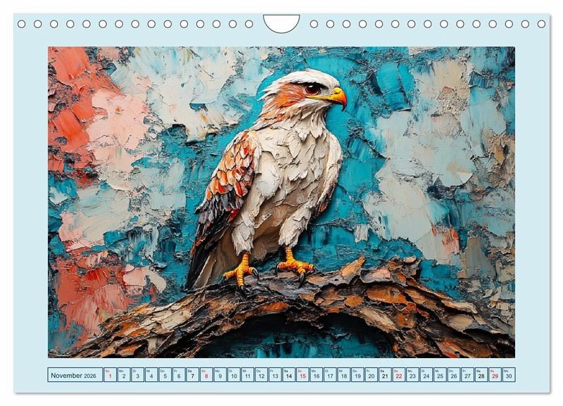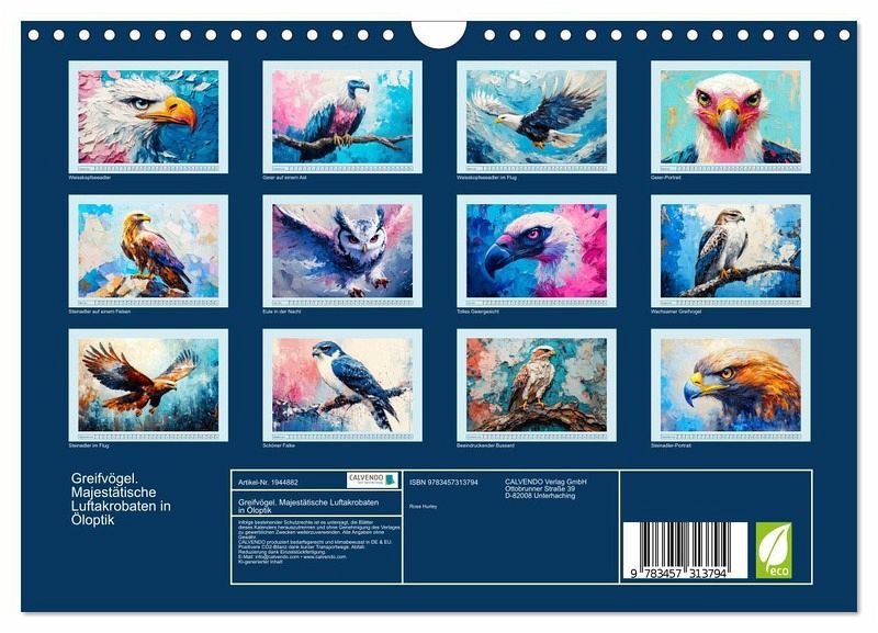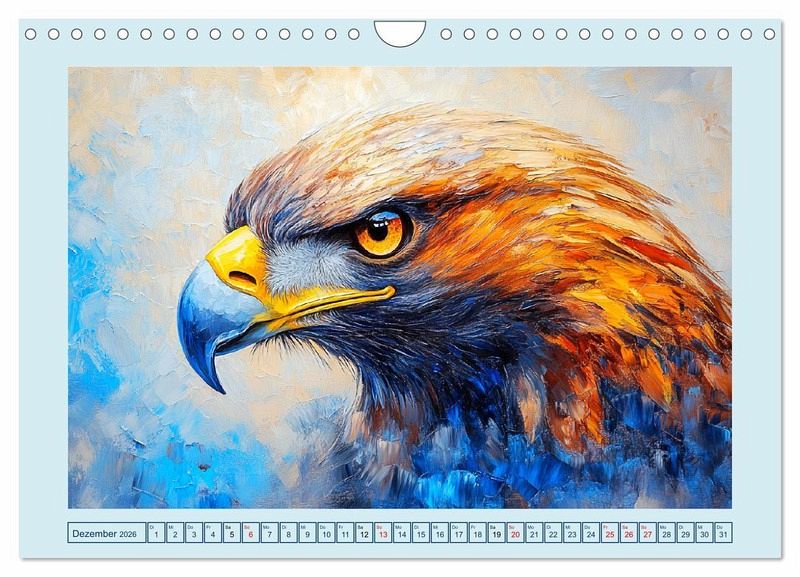 Dieser schöne Kalender fängt die Schönheit und Mystik von Greifvögeln ein. Jede Seite zeigt ein mit Hilfe von KI generiertes Ölgemälde, das Vögel in verschiedenen Szenen festhält - im Flug, auf Ästen oder als Portrait. Die Verbindung von Technologie und klassischer Kunst lässt die Bilder lebendig wirken, als wären sie von Hand gemalt. Dieser Kalender ist eine Hommage an die faszinierende Welt der Raubvögel und die künstlerischen Möglichkeiten der KI.