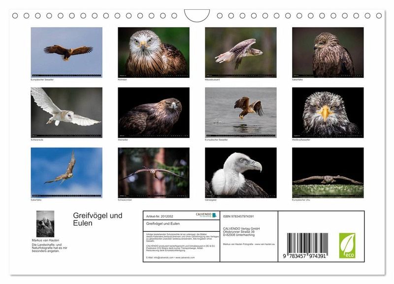 QUALITÄT - Hochwertiger Fotokalender mit 12 wunderschönen Motiven auf lichtbeständigem Bilderdruckpapier, robuste Spiralbindung mit Aufhängebügel.NACHHALTIG - deutliche Abfallreduzierung durch bedarfsgerechte Einzelstückfertigung, umweltfreundliches FSC-zertifiziertes Papier, Produktion in Deutschland, klimabewusste Logistik.PERFEKTES GESCHENK - Kalender für Freunde und Familie, für Kinder und Erwachsene, jung und alt, zu Weihnachten, Geburtstag oder zwischendurch.VIELFALT - Bildkalender in verschiedenen Formaten, z.B. DIN A5, DIN A4, DIN A3 sowie DIN A2. Ob Naturmotiv, Gemälde oder Fotos, ideal für ein persönliches Wohlfühlambiente.Eine kleine Auswahl meiner Greifvogelfotos von Autor(in): Markus van Hauten