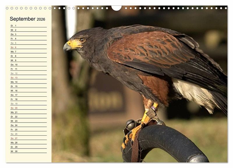 Der etwas andere Planer. Eine kleine Auswahl der verschiedener Greifvögel dieser Erde. Aufgenommen in einer Greifvogelstation.