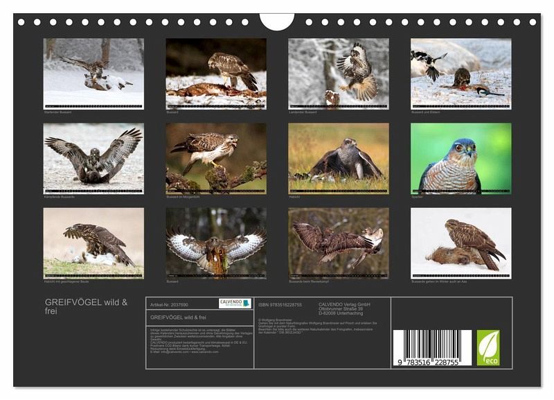 QUALITÄT - Hochwertiger Fotokalender mit 12 wunderschönen Motiven auf lichtbeständigem Bilderdruckpapier, robuste Spiralbindung mit Aufhängebügel.NACHHALTIG - deutliche Abfallreduzierung durch bedarfsgerechte Einzelstückfertigung, umweltfreundliches FSC-zertifiziertes Papier, Produktion in Deutschland, klimabewusste Logistik.PERFEKTES GESCHENK - Kalender für Freunde und Familie, für Kinder und Erwachsene, jung und alt, zu Weihnachten, Geburtstag oder zwischendurch.VIELFALT - Bildkalender in verschiedenen Formaten, z.B. DIN A5, DIN A4, DIN A3 sowie DIN A2. Ob Naturmotiv, Gemälde oder Fotos, ideal für ein persönliches Wohlfühlambiente.Greifvögel in faszinierenden Bildern von Autor(in): Wolfgang Brandmeier