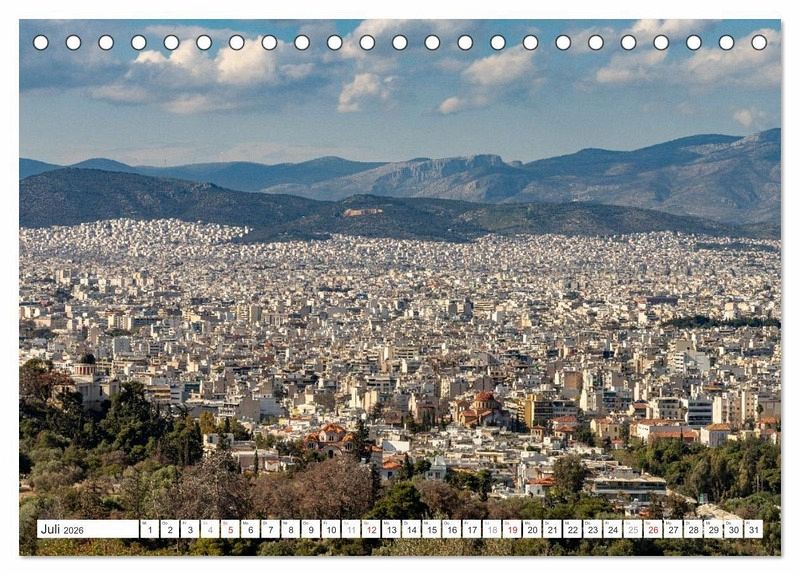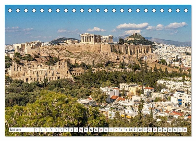 Jeder Monat zeigt eindrucksvolle Aufnahmen, die das einzigartige Flair Athens einfangen - eine Stadt voller Geschichte, Kultur und mediterranem Lebensgefühl.
