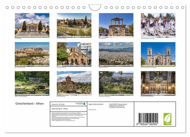 Tauchen Sie ein in die faszinierende Mischung aus Antike und Moderne mit diesem Kalender vom renommierten Reisfotografen Peter Schickert! Erleben Sie die griechische Hauptstadt in ihrer ganzen Vielfalt - von der majestätischen Akropolis hin zu römischen Hinterlassenschaften und alten Traditionen.