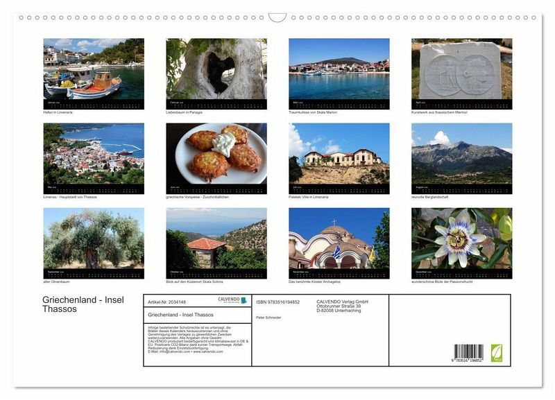 Thassos - die traumhaft schöne Insel im Norden von Griechenland.Erleben Sie mit diesem Kalender die unterschiedlichsten Eindrücke von Thassos und lassen Sie sich Monat für Monat immer wieder neu verzaubern.