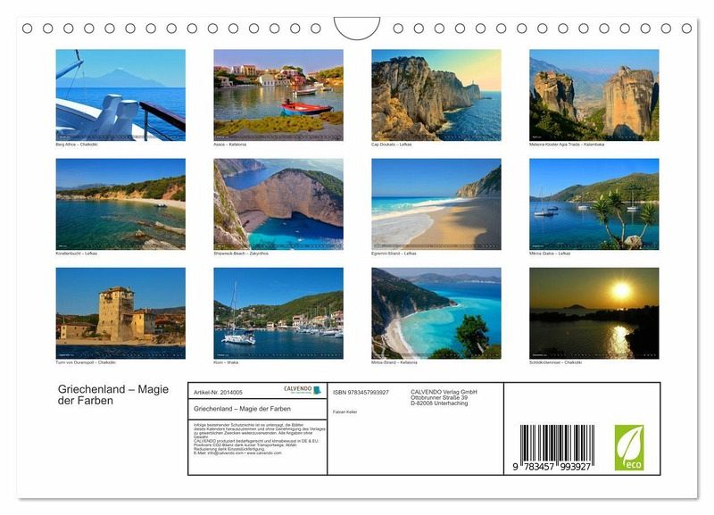 QUALITÄT - Hochwertiger Fotokalender mit 12 wunderschönen Motiven auf lichtbeständigem Bilderdruckpapier, robuste Spiralbindung mit Aufhängebügel.NACHHALTIG - deutliche Abfallreduzierung durch bedarfsgerechte Einzelstückfertigung, umweltfreundliches FSC-zertifiziertes Papier, Produktion in Deutschland, klimabewusste Logistik.PERFEKTES GESCHENK - Kalender für Freunde und Familie, für Kinder und Erwachsene, jung und alt, zu Weihnachten, Geburtstag oder zwischendurch.VIELFALT - Bildkalender in verschiedenen Formaten, z.B. DIN A5, DIN A4, DIN A3 sowie DIN A2. Ob Naturmotiv, Gemälde oder Fotos, ideal für ein persönliches Wohlfühlambiente.Griechenland. Lassen Sie sich mitnehmen in ein Land voller fantastischer Farben. von Autor(in): Fabian Keller