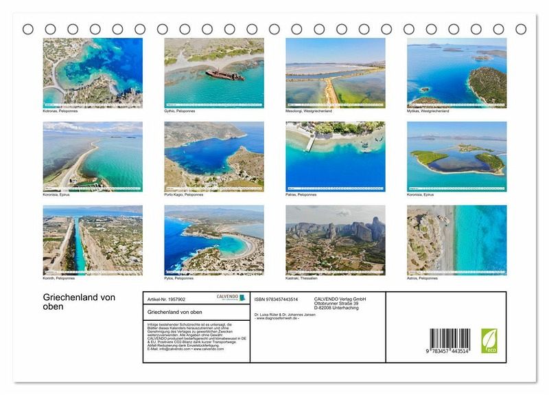QUALITÄT - Hochwertiger Fotokalender mit 12 wunderschönen Motiven auf lichtbeständigem Bilderdruckpapier, robuste Spiralbindung.NACHHALTIG - deutliche Abfallreduzierung durch bedarfsgerechte Einzelstückfertigung, umweltfreundliches FSC-zertifiziertes Papier, Produktion in Deutschland, klimabewusste Logistik.PERFEKTES GESCHENK - Kalender für Freunde und Familie, für Kinder und Erwachsene, jung und alt, zu Weihnachten, Geburtstag oder zwischendurch.VIELFALT - Bildkalender in verschiedenen Formaten, z.B. DIN A5, DIN A4, DIN A3 sowie DIN A2. Ob Naturmotiv, Gemälde oder Fotos, ideal für ein persönliches Wohlfühlambiente.Erleben Sie die Schönheit und Vielfältigkeit Griechenlands aus der Vogelperspektive. von Autor(in): Luisa Rüter