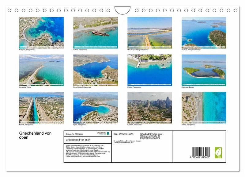 QUALITÄT - Hochwertiger Fotokalender mit 12 wunderschönen Motiven auf lichtbeständigem Bilderdruckpapier, robuste Spiralbindung mit Aufhängebügel.NACHHALTIG - deutliche Abfallreduzierung durch bedarfsgerechte Einzelstückfertigung, umweltfreundliches FSC-zertifiziertes Papier, Produktion in Deutschland, klimabewusste Logistik.PERFEKTES GESCHENK - Kalender für Freunde und Familie, für Kinder und Erwachsene, jung und alt, zu Weihnachten, Geburtstag oder zwischendurch.VIELFALT - Bildkalender in verschiedenen Formaten, z.B. DIN A5, DIN A4, DIN A3 sowie DIN A2. Ob Naturmotiv, Gemälde oder Fotos, ideal für ein persönliches Wohlfühlambiente.Erleben Sie die Schönheit und Vielfältigkeit Griechenlands aus der Vogelperspektive. von Autor(in): Luisa Rüter