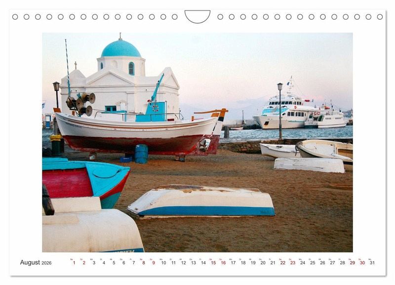 Ein Kalender, der die Sehnsucht nach Griechenland befeuert! Ein Besuch der Akropolis auf dem Athener Burgberg kann ein gelungener Start einer Griechenlandreise sein. Entspannung von der aufregenden Metropole bieten dann jedoch die malerischen Kykladeninseln Naxos, Mykonos, Santorini und Syros, besonders gegen Ende der Saison im Oktober: Griechenland-Genuss pur am tiefblauen Meer der Ägäis.