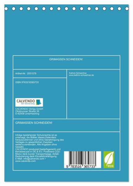 QUALITÄT - Hochwertiger Fotokalender mit 12 wunderschönen Motiven auf lichtbeständigem Bilderdruckpapier, robuste Spiralbindung.NACHHALTIG - deutliche Abfallreduzierung durch bedarfsgerechte Einzelstückfertigung, umweltfreundliches FSC-zertifiziertes Papier, Produktion in Deutschland, klimabewusste Logistik.PERFEKTES GESCHENK - Kalender für Freunde und Familie, für Kinder und Erwachsene, jung und alt, zu Weihnachten, Geburtstag oder zwischendurch.VIELFALT - Bildkalender in verschiedenen Formaten, z.B. DIN A5, DIN A4, DIN A3 sowie DIN A2. Ob Naturmotiv, Gemälde oder Fotos, ideal für ein persönliches Wohlfühlambiente.Total abgefahren! Grimassen schneiden war noch nie so witzig! von Autor(in): Kathrin Schwertner