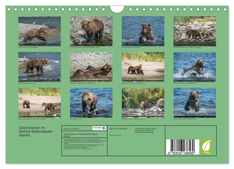 QUALITÄT - Hochwertiger Fotokalender mit 12 wunderschönen Motiven auf lichtbeständigem Bilderdruckpapier, robuste Spiralbindung mit Aufhängebügel.NACHHALTIG - deutliche Abfallreduzierung durch bedarfsgerechte Einzelstückfertigung, umweltfreundliches FSC-zertifiziertes Papier, Produktion in Deutschland, klimabewusste Logistik.PERFEKTES GESCHENK - Kalender für Freunde und Familie, für Kinder und Erwachsene, jung und alt, zu Weihnachten, Geburtstag oder zwischendurch.VIELFALT - Bildkalender in verschiedenen Formaten, z.B. DIN A5, DIN A4, DIN A3 sowie DIN A2. Ob Naturmotiv, Gemälde oder Fotos, ideal für ein persönliches Wohlfühlambiente.Die Lachsflüsse an der Kukak Bay-Küste im Katmai NP bieten ein umfangreiches Nahrungsangebot für Bären, was dazu führt, dass diese hier den ganzen Sommer über zu beobachten sind. von Autor(in): Photo4emotion.com