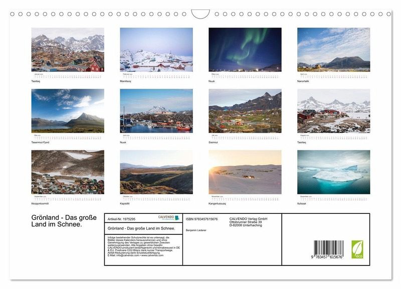 QUALITÄT - Hochwertiger Fotokalender mit 12 wunderschönen Motiven auf lichtbeständigem Bilderdruckpapier, robuste Spiralbindung mit Aufhängebügel.NACHHALTIG - deutliche Abfallreduzierung durch bedarfsgerechte Einzelstückfertigung, umweltfreundliches FSC-zertifiziertes Papier, Produktion in Deutschland, klimabewusste Logistik.PERFEKTES GESCHENK - Kalender für Freunde und Familie, für Kinder und Erwachsene, jung und alt, zu Weihnachten, Geburtstag oder zwischendurch.VIELFALT - Bildkalender in verschiedenen Formaten, z.B. DIN A5, DIN A4, DIN A3 sowie DIN A2. Ob Naturmotiv, Gemälde oder Fotos, ideal für ein persönliches Wohlfühlambiente.Entdecken Sie das atemberaubende Grönland, so wie Sie es noch nie gesehen haben. vonAutor(in): Benjamin Lederer