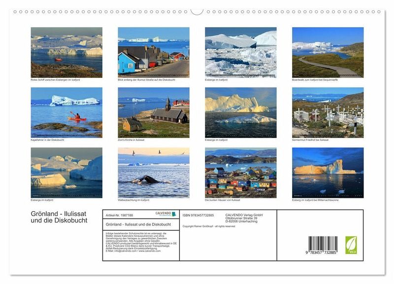 PREMIUM-LINIE - Brillanter Fotokalender mit 12 wunderschönen Motiven, Kunstdruck in Hochglanz in Museumsqualität.QUALITÄT - edle Materialien, stabile Rückwand mit 2 innovativen Einstecktaschen für eine optimale Präsentation an der Wand.NACHHALTIG - deutliche Abfallreduzierung durch bedarfsgerechte Einzelstückfertigung, umweltfreundliches FSC-zertifiziertes Papier, Produktion in Deutschland, klimabewusste Logistik.PERFEKTES GESCHENK - Kalender für Freunde und Familie, für Kinder und Erwachsene, jung und alt, zu Weihnachten, Geburtstag oder zwischendurch.Faszinierende Bilder aus der arktischen Welt des Eisfjords in West Grönland von Autor(in): gro