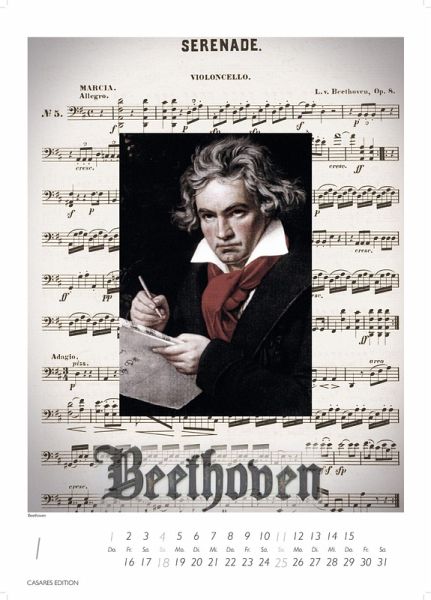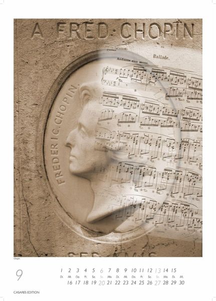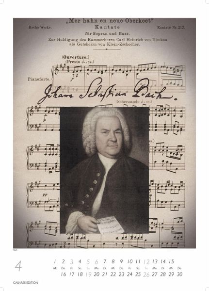 Tauchen Sie ein in die faszinierende Welt der klassischen Musik mit dem "Große Komponisten 2026" Kalender. Dieser kunstvoll gestaltete Wandkalender präsentiert Ihnen 12 bedeutende Persönlichkeiten der Musikgeschichte, darunter Bach, Mozart, Beethoven, Chopin und viele mehr. Ob als Geschenk für Musikliebhaber, für Kulturliebhaber oder für Musiker - dieser Kalender verbindet Kunst, Kultur und Geschichte auf elegante Weise mit 12 faszinierenden grossformatigen Fotos, gedruckt auf schwerem 170g Papier, in Spitzenqualität.Auf der Rückseite des Kalenders befindet sich ein Motivinformationsblatt mit allen Motiven. Das Kalendarium ist sehr klar und übersichtlich. Gebunden ist der Kalender mit Spiralbindung und er ist mit einem stabilen Aufhänger versehen.