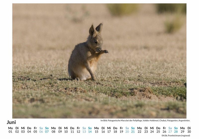 Entdecken Sie die faszinierende Welt des Großen Pampashasen mit unserem exklusiven Wandkalender! Lassen Sie sich Monat für Monat von 12 atemberaubenden Motiven dieses einzigartigen Tieres verzaubern. Gedruckt auf hochwertigem, lichtbeständigem Bilderdruckpapier, bringt dieser Kalender die Schönheit der Natur direkt in Ihr Zuhause. Hergestellt in Deutschland auf FSC-zertifiziertem Papier, vereint er Nachhaltigkeit und Qualität. Perfekt als Geschenk oder für die eigene Wand - dieser Kalender ist ein echter Hingucker und ein Muss für Tierliebhaber! Sichern Sie sich jetzt Ihr Exemplar und genießen Sie das ganze Jahr über die Eleganz des Großen Pampashasen! Hochwertig Erleben Sie ein Jahr voller Eleganz mit unserem Premium-Fotokalender. Jedes der 12 Motive ist auf hochwertigem, lichtbeständigem Bilderdruckpapier gedruckt, um die Lebendigkeit jedes Bildes zu bewahren. Die robuste Spiralbindung gewährleistet Langlebigkeit und einfache Handhabung. Nachhaltig Unser Engagement für die Umwelt spiegelt sich in jedem Exemplar wider. Durch die Produktion auf Abruf reduzieren wir signifikant unseren Abfall. Wir verwenden ausschließlich umweltfreundliches, FSC-zertifiziertes Papier. Stolz gefertigt in Deutschland, achten wir bei unserer Logistik auf Klimaschutz, um unseren ökologischen Fußabdruck zu minimieren. Das ideale Geschenk Dieser Kalender ist das perfekte Präsent für jeden Anlass - ob Weihnachten, Geburtstage oder einfach als liebevolle Aufmerksamkeit zwischendurch. Geeignet für Freunde, Familie, Kinder und Erwachsene gleichermaßen, bereichert er jedes Zuhause mit seiner Vielfalt und Schönheit, unabhängig vom Alter der Beschenkten.