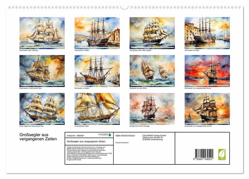 PREMIUM-LINIE - Brillanter Fotokalender mit 12 wunderschönen Motiven, Kunstdruck in Hochglanz in Museumsqualität.QUALITÄT - edle Materialien, stabile Rückwand mit 2 innovativen Einstecktaschen für eine optimale Präsentation an der Wand.NACHHALTIG - deutliche Abfallreduzierung durch bedarfsgerechte Einzelstückfertigung, umweltfreundliches FSC-zertifiziertes Papier, Produktion in Deutschland, klimabewusste Logistik.PERFEKTES GESCHENK - Kalender für Freunde und Familie, für Kinder und Erwachsene, jung und alt, zu Weihnachten, Geburtstag oder zwischendurch.Historische Schiffe als zauberhafte Aquarelle KI generiert von Autor(in): Claudia Kleemann