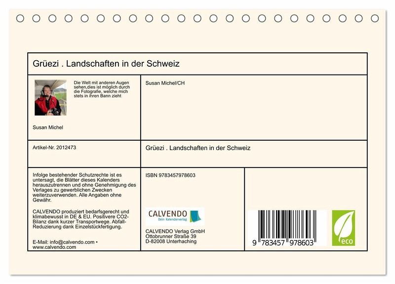 QUALITÄT - Hochwertiger Fotokalender mit 12 wunderschönen Motiven auf lichtbeständigem Bilderdruckpapier, robuste Spiralbindung.NACHHALTIG - deutliche Abfallreduzierung durch bedarfsgerechte Einzelstückfertigung, umweltfreundliches FSC-zertifiziertes Papier, Produktion in Deutschland, klimabewusste Logistik.PERFEKTES GESCHENK - Kalender für Freunde und Familie, für Kinder und Erwachsene, jung und alt, zu Weihnachten, Geburtstag oder zwischendurch.VIELFALT - Bildkalender in verschiedenen Formaten, z.B. DIN A5, DIN A4, DIN A3 sowie DIN A2. Ob Naturmotiv, Gemälde oder Fotos, ideal für ein persönliches Wohlfühlambiente.Die Schweiz lädt zum Verweilen ein. Lassen Sie sich überraschen. von Autor(in): Susan Michel