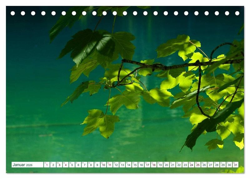 Die Farben der Natur wirken bereichernd. Die Farbe der Natur ist GRÜN .GRÜN ist die Heilfarbe schlechthin. Wirkt ausgleichend, harmonisierend, beruhigend und lindernd. Atmen Sie Monat für Monat tief durch , hier in diesem Kalender, hier mit diesen wunderschönen Fotografien der Farbe GRÜN , der Natur ! Nutzen Sie die Kraftquelle GRÜN !