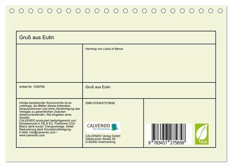 QUALITÄT - Hochwertiger Fotokalender mit 12 wunderschönen Motiven auf lichtbeständigem Bilderdruckpapier, robuste Spiralbindung.NACHHALTIG - deutliche Abfallreduzierung durch bedarfsgerechte Einzelstückfertigung, umweltfreundliches FSC-zertifiziertes Papier, Produktion in Deutschland, klimabewusste Logistik.PERFEKTES GESCHENK - Kalender für Freunde und Familie, für Kinder und Erwachsene, jung und alt, zu Weihnachten, Geburtstag oder zwischendurch.VIELFALT - Bildkalender in verschiedenen Formaten, z.B. DIN A5, DIN A4, DIN A3 sowie DIN A2. Ob Naturmotiv, Gemälde oder Fotos, ideal für ein persönliches Wohlfühlambiente.Alte Ansichtskarten und Notgeld der Stadt Eutin von Autor(in): Henning von Loewis of Menar