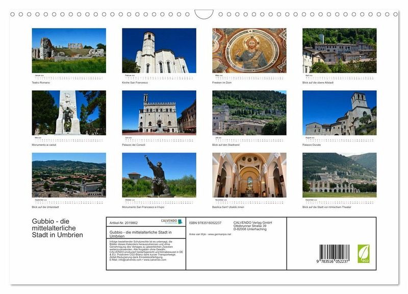 QUALITÄT - Hochwertiger Fotokalender mit 12 wunderschönen Motiven auf lichtbeständigem Bilderdruckpapier, robuste Spiralbindung mit Aufhängebügel.NACHHALTIG - deutliche Abfallreduzierung durch bedarfsgerechte Einzelstückfertigung, umweltfreundliches FSC-zertifiziertes Papier, Produktion in Deutschland, klimabewusste Logistik.PERFEKTES GESCHENK - Kalender für Freunde und Familie, für Kinder und Erwachsene, jung und alt, zu Weihnachten, Geburtstag oder zwischendurch.VIELFALT - Bildkalender in verschiedenen Formaten, z.B. DIN A5, DIN A4, DIN A3 sowie DIN A2. Ob Naturmotiv, Gemälde oder Fotos, ideal für ein persönliches Wohlfühlambiente.Ein fotografischer Rundgang durch die historische Stadt Gubbio in Umbrien, Italien. von Autor(in): Anke van Wyk
