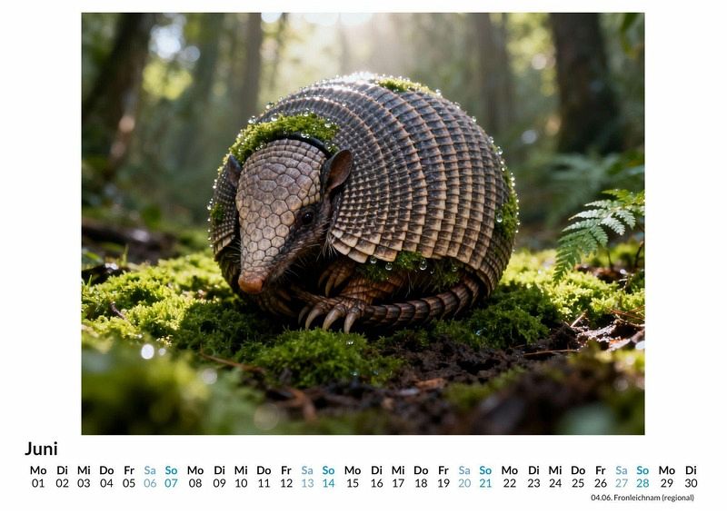 Was wäre, wenn Gürteltiere nicht nur die gepanzerten Bewohner der Steppe wären? Der Kalender "Gürteltier" stellt diese Frage und liefert zwölf unerwartete Antworten. Er bricht mit allen Konventionen und zeigt das bekannte Tier in Szenarien, die ebenso komisch wie faszinierend sind. Eine monatliche Reise ins Reich des Absurden und Wunderlichen erwartet den Betrachter. Dieser Kalender ist ideal für: * Liebhaber des Surrealen und Unerwarteten. * Menschen, die Humor und Kreativität im Alltag schätzen. * Alle, die ein wirklich originelles Geschenk jenseits des Gewohnten suchen. Jeder Monat enthüllt eine neue, fantastische Szene. Ein Gürteltier als viktorianischer Entdecker, ein anderes als Pilot eines futuristischen Fluggeräts. Diese Bilder sind keine Malereien, sondern wurden von einem kreativen Algorithmus erdacht, der die Grenzen der Vorstellungskraft auslotet. Jede Darstellung ist ein Fenster in eine Welt, die es so noch nie gegeben hat und die zum Nachdenken und Schmunzeln anregt. Was dieser Kalender bietet: * Zwölf Monatsblätter mit kuriosen Gürteltier Motiven. * Ein praktisches Kalendarium für die Organisation von Terminen. * Einen Jahresbegleiter, der Monat für Monat für Gesprächsstoff sorgt. Der Kalender "Gürteltier" ist mehr als nur ein Zeitplaner; er ist eine monatliche Einladung zum Staunen. Eine Reise durch zwölf alternative Realitäten, in denen das Gürteltier die Hauptrolle spielt. Es lohnt sich, einen Blick auf die einzelnen Monatsmotive zu werfen und sich von der Einzigartigkeit der Kompositionen überraschen zu lassen.