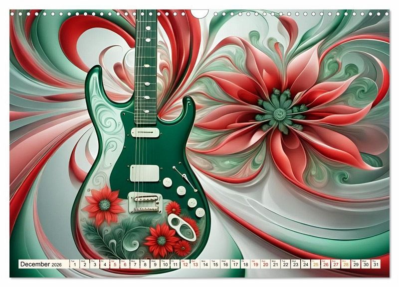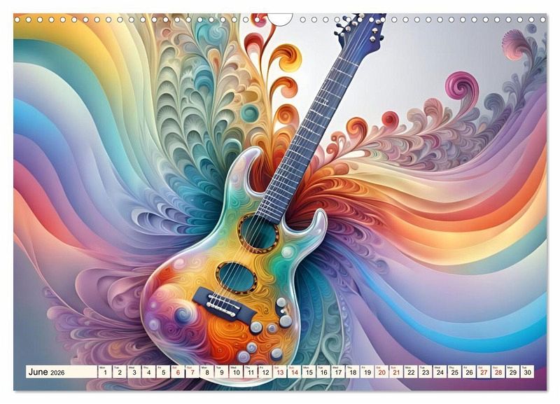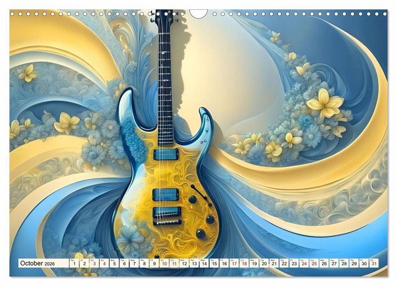 This exclusive calendar presents you with a collection of colourful guitars created from the fascinating world of fractal art with the help of artificial intelligence. Each motif is an extraordinary blend of abstract shapes and harmonious lines that will amaze you.