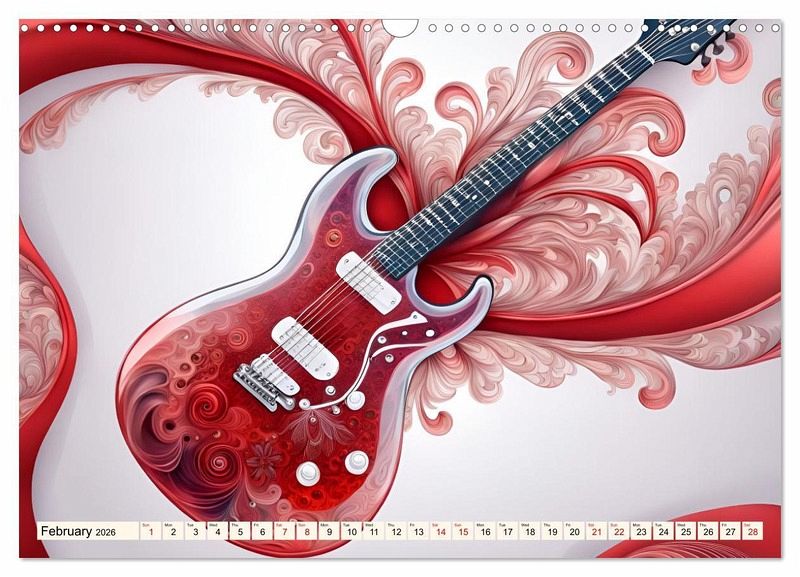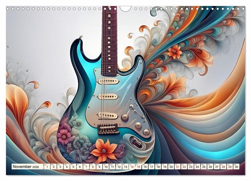 QUALITY - High-quality photo calendar with 12 beautiful images on light-resistant paper, robust spiral binding with hanger.SUSTAINABLE - Significant waste reduction due to print-on-demand production, environmentally friendly FSC-certified paper, produced in the UK, climate-conscious logistical processes.PERFECT GIFT - calendars for friends and family, for children, all ages and all occasions, from Christmas to birthdays and everything in between.LOTS OF CHOICE - Wall calendars in different sizes (DIN A4 and DIN A3), for any topic and personal taste, featuring photography, painting and illustrations.Fascinating world of guitars, created with AI., author: Dusanka Djeric