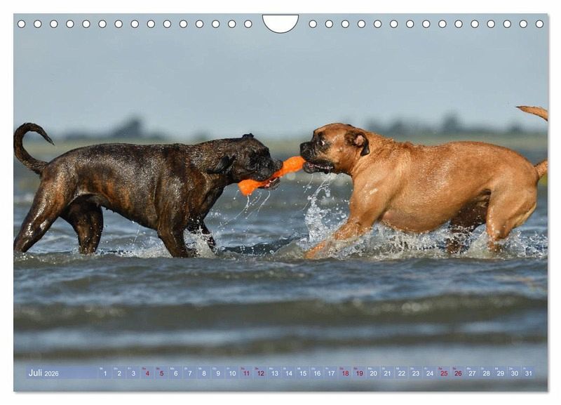 Juli: Zwei Boxer spielen im Meer