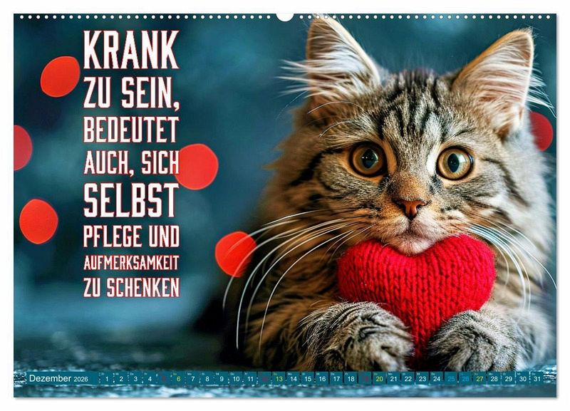 "Gute Besserung - mit coolen Sprüchen" ist eine Sammlung von aufmunternden Genesungswünschen, die Menschen in schwierigen Zeiten ein Lächeln ins Gesicht zaubern sollen. Ob nach einer Krankheit, Operation oder einfach nur bei einer Erkältung - diese Sprüche sind darauf ausgelegt, Trost zu spenden und Mut zu machen. Sie kombinieren positive Botschaften mit einem Hauch von Nachdenklichkeit, um den Heilungsprozess leichter und angenehmer zu gestalten. Dieser Kalender wurde mit Unterstützung der KI erstellt.