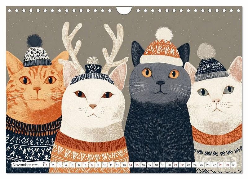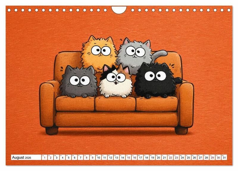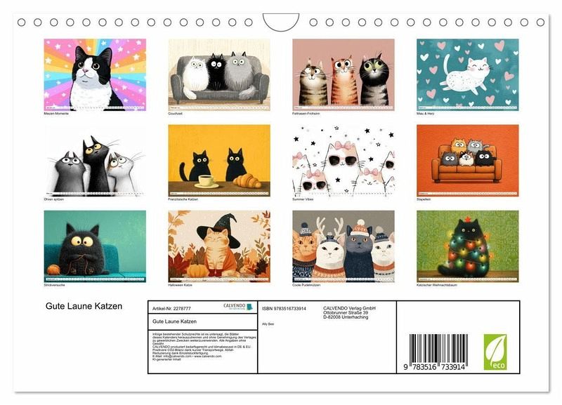 Entdecken Sie den ultimativen Katzenkalender für das kommende Jahr! Unser Kalender mit lustigen Katzenillustrationen bringt jeden Monat ein Lächeln auf Ihr Gesicht. Perfekt für Katzenliebhaber, die ihre Leidenschaft für die Samtpfoten mit Humor verbinden möchten. Jede Seite bietet einzigartige, handgezeichnete Motive, die nicht nur Ihren Alltag erheitern, sondern auch als stilvolle Dekoration für Ihr Zuhause oder Büro dienen. Ideal als Geschenk für Freunde, Familie oder einfach als kleines Vergnügen für sich selbst. Verpassen Sie nicht die Gelegenheit, sich jeden Tag von den charmanten Illustrationen inspirieren zu lassen!