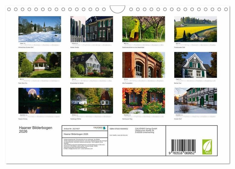 QUALITÄT - Hochwertiger Fotokalender mit 12 wunderschönen Motiven auf lichtbeständigem Bilderdruckpapier, robuste Spiralbindung mit Aufhängebügel.NACHHALTIG - deutliche Abfallreduzierung durch bedarfsgerechte Einzelstückfertigung, umweltfreundliches FSC-zertifiziertes Papier, Produktion in Deutschland, klimabewusste Logistik.PERFEKTES GESCHENK - Kalender für Freunde und Familie, für Kinder und Erwachsene, jung und alt, zu Weihnachten, Geburtstag oder zwischendurch.VIELFALT - Bildkalender in verschiedenen Formaten, z.B. DIN A5, DIN A4, DIN A3 sowie DIN A2. Ob Naturmotiv, Gemälde oder Fotos, ideal für ein persönliches Wohlfühlambiente.Impressionen aus der Gartenstadt Haan von Autor(in): Udo Haafke