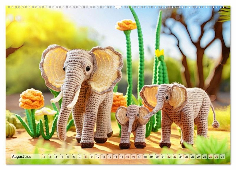 Erleben Sie die zauberhafte Welt der Häkelliebe mit unserem Kalender 'Häkelliebe - Fantasie in Maschen einfangen'. Jeder Monat enthüllt kunstvoll gehäkelte Motive, die die Fantasie beflügeln und die Liebe zur Handarbeit in jedem Maschenzug widerspiegeln. Von majestätischen Elefanten, die in der weiten Savanne verweilen, über anmutige Meerjungfrauen, bis hin zu entzückenden Osterhasen, die den Frühling mit Freude begrüßen - jeder Monat erzählt eine einzigartige Geschichte, gewoben aus faszinierenden KI-generierten Fäden der Kreativität. Keine Anleitungen enthalten.