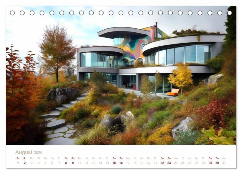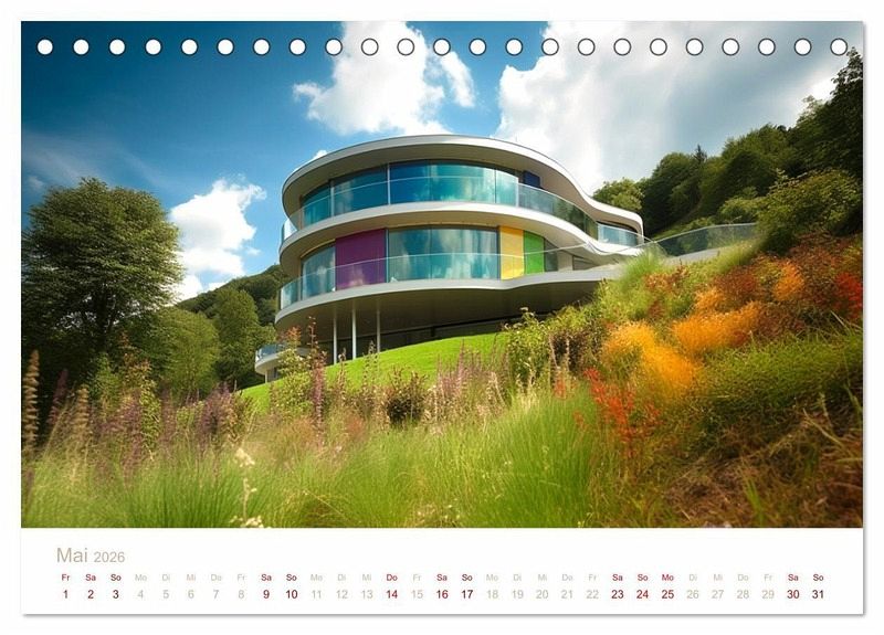 Wenn Sie auf der Suche nach einem einzigartigen und inspirierenden Geschenk sind, dann ist dieser Wandkalender die perfekte Wahl! Lassen Sie sich von den futuristischen Häusern in den Bergen verzaubern und träumen Sie von einer besseren Zukunft. Bestellen Sie noch heute!