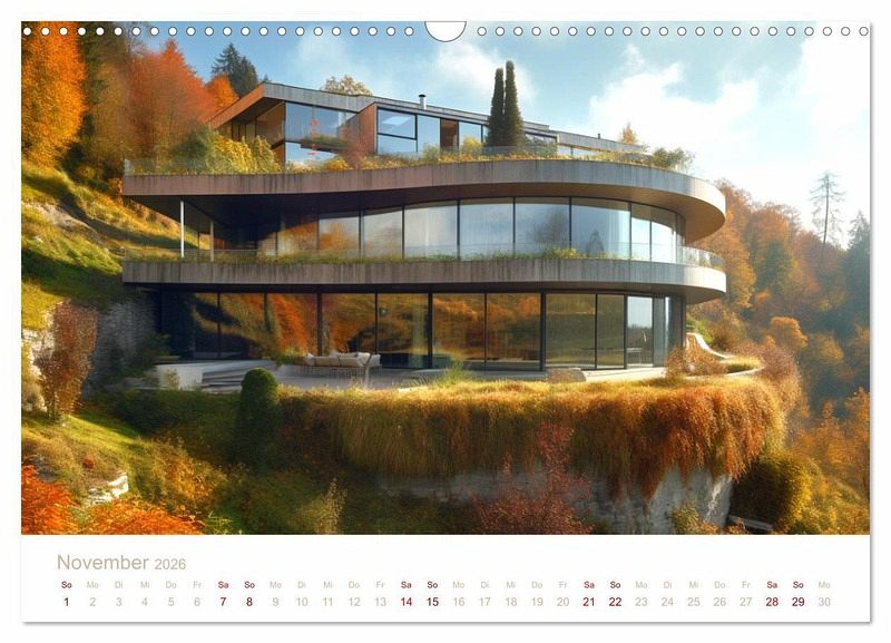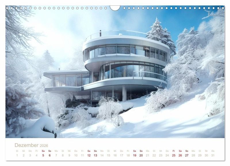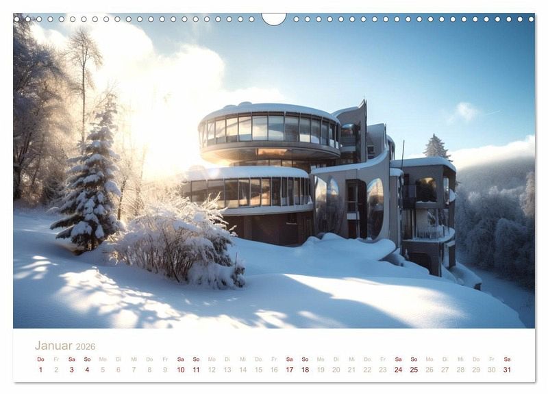 Wenn Sie auf der Suche nach einem einzigartigen und inspirierenden Geschenk sind, dann ist dieser Wandkalender die perfekte Wahl! Lassen Sie sich von den futuristischen Häusern in den Bergen verzaubern und träumen Sie von einer besseren Zukunft. Bestellen Sie noch heute!