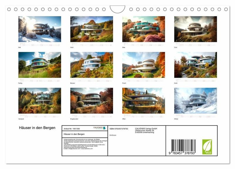 Wenn Sie auf der Suche nach einem einzigartigen und inspirierenden Geschenk sind, dann ist dieser Wandkalender die perfekte Wahl! Lassen Sie sich von den futuristischen Häusern in den Bergen verzaubern und träumen Sie von einer besseren Zukunft. Bestellen Sie noch heute!