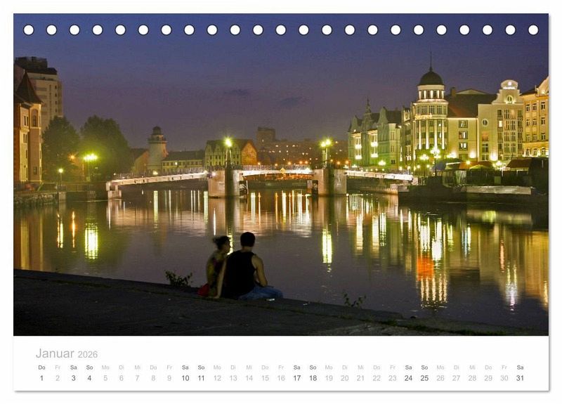 Mit diesem Kalender begibt man sich auf eine Reise über die Ostsee und kann zwölf verschiedene Hafenstädte der Ostsee eindrucksvoll erleben. Jeden Monat befindet man sich in einer anderen Stadt: St. Petersburg, Kaliningrad, Stockholm, Danzig, Riga, Lübeck, Kopenhagen, Helsinki, Visby, Rostock, Tallinn, Kiel. Ein großes ästhetisches Reisevergnügen.