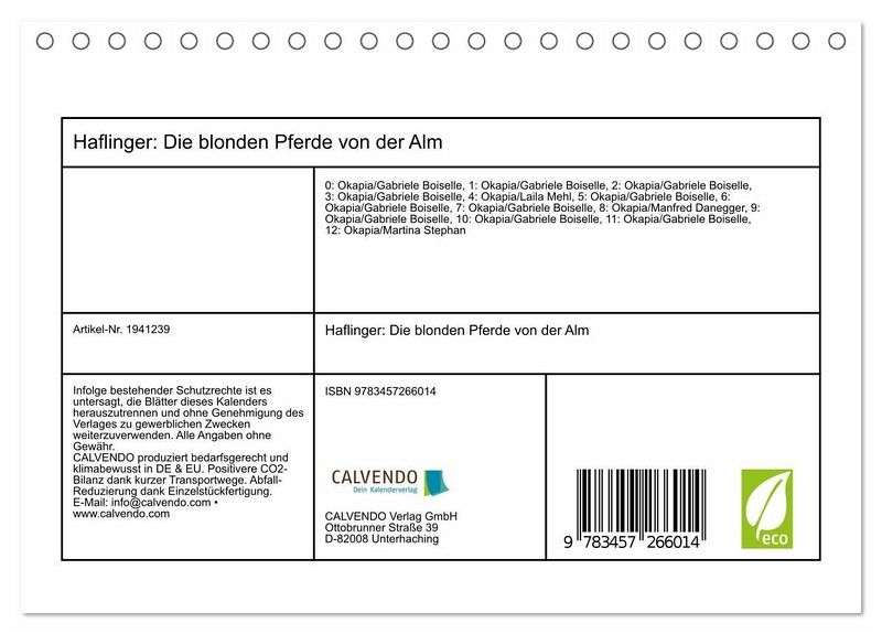 QUALITÄT - Hochwertiger Fotokalender mit 12 wunderschönen Motiven auf lichtbeständigem Bilderdruckpapier, robuste Spiralbindung.NACHHALTIG - deutliche Abfallreduzierung durch bedarfsgerechte Einzelstückfertigung, umweltfreundliches FSC-zertifiziertes Papier, Produktion in Deutschland, klimabewusste Logistik.PERFEKTES GESCHENK - Kalender für Freunde und Familie, für Kinder und Erwachsene, jung und alt, zu Weihnachten, Geburtstag oder zwischendurch.VIELFALT - Bildkalender in verschiedenen Formaten, z.B. DIN A5, DIN A4, DIN A3 sowie DIN A2. Ob Naturmotiv, Gemälde oder Fotos, ideal für ein persönliches Wohlfühlambiente.Haflinger: Ungestüme Lebensfreude von Autor(in): CALVENDO Verlag
