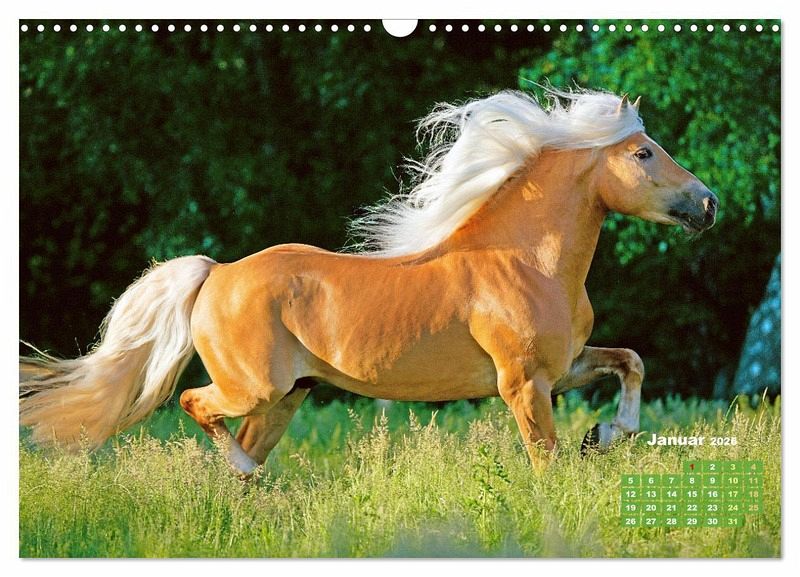Die üppige weiße Mähne, das goldglänzende Fell, das ausdrucksstarke Wesen und der treue Charakter der Haflinger faszinieren alle Pferdefreunde. In diesem farbenprächtigen Fotokalender sind die schönsten Momente mit diesen herrlichen Geschöpfen eingefangen: Ein Haflinger Hengst präsentiert sich selbstbewusst auf der Koppel, junge Fohlen spielen miteinander und eine Herde galoppiert im Sonnenuntergang.