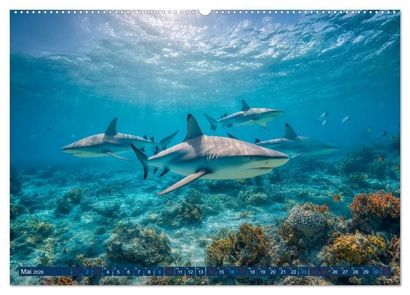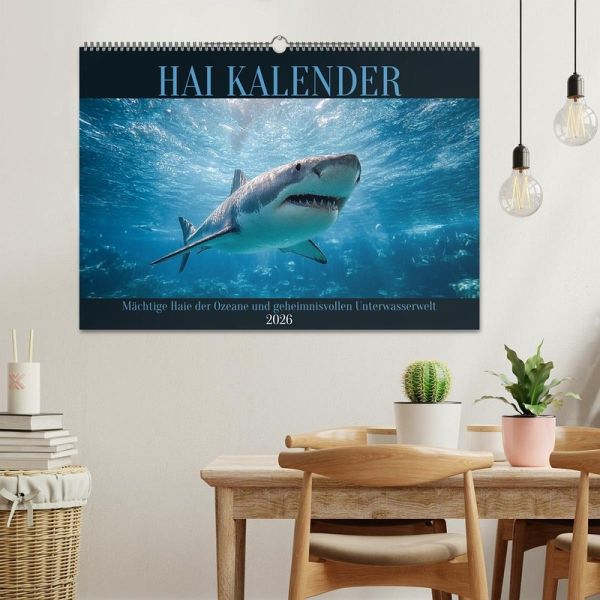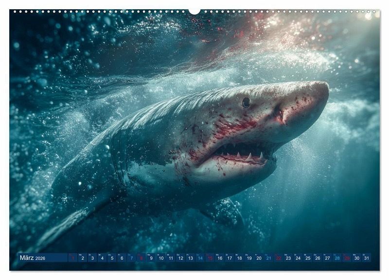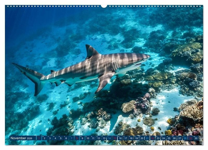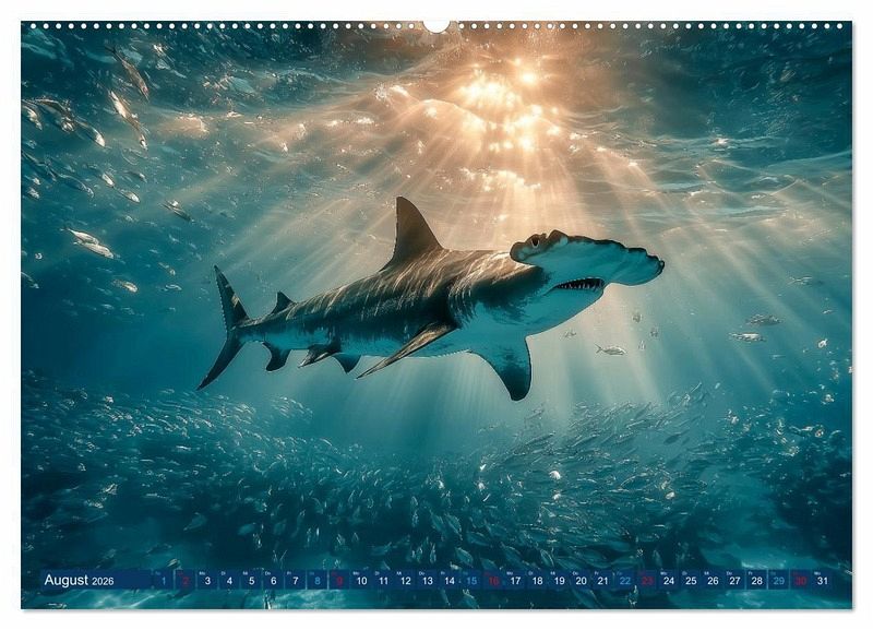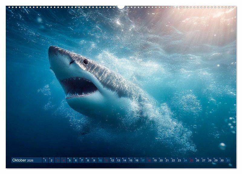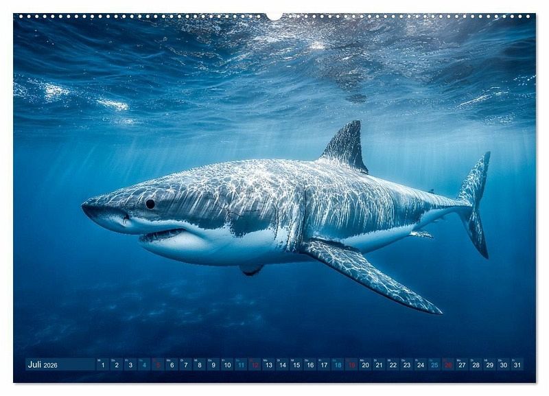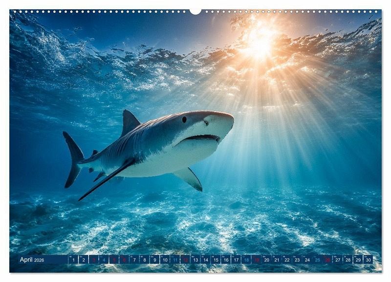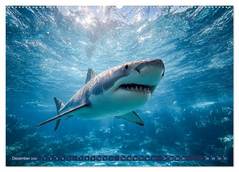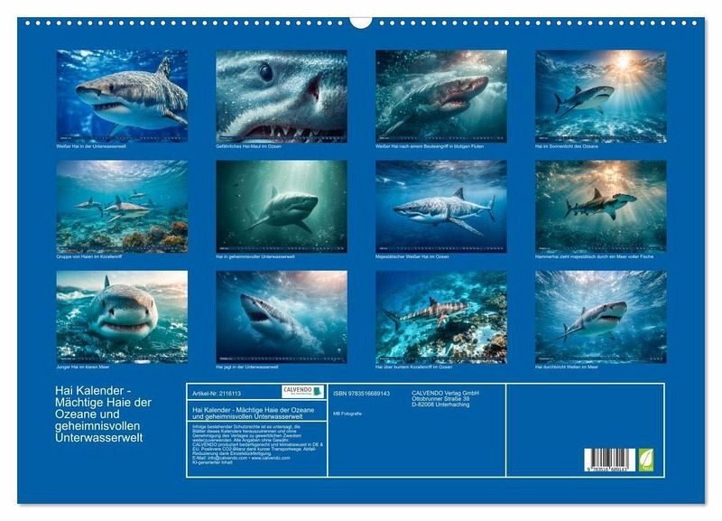 Majestätische Haie faszinieren seit jeher als mächtige Jäger der Ozeane und beeindruckende Meeresräuber der Unterwasserwelt. Dieser Tierkalender zeigt die ganze Kraft, Dynamik und Schönheit dieser Tiere in eindrucksvollen Bildern. Ob im offenen Meer, in geheimnisvollen Tiefen oder nahe der Küsten - Haie ziehen den Betrachter durch ihre Präsenz und Anmut sofort in den Bann. Monat für Monat erwarten Sie spektakuläre Tiermotive voller Spannung und Intensität. Ein Kalender, der Naturfreunde, Ozean-Fans und Liebhaber der Unterwasserwelt gleichermaßen begeistert. Haie stehen hier im Mittelpunkt - wild, kraftvoll und faszinierend. Ideal für alle, die die Faszination der Meereswelt lieben und außergewöhnliche Tieraufnahmen schätzen. Bilder mit KI generiert.