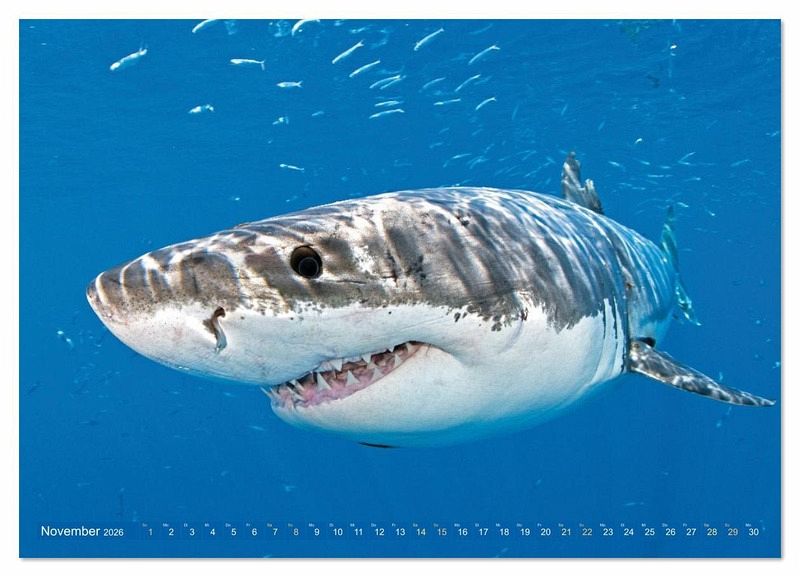 November: Weißer Hai (Carcharodon carcharia), ist kein menschenfressendes Monster, sondern inzwischen eine bedrohte Tierart, Guadalupe, Mexiko