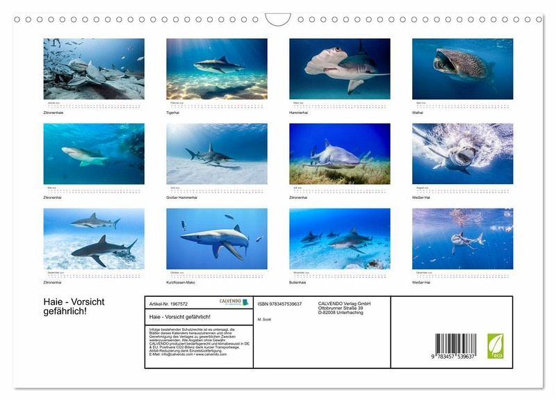 QUALITÄT - Hochwertiger Fotokalender mit 12 wunderschönen Motiven auf lichtbeständigem Bilderdruckpapier, robuste Spiralbindung mit Aufhängebügel.NACHHALTIG - deutliche Abfallreduzierung durch bedarfsgerechte Einzelstückfertigung, umweltfreundliches FSC-zertifiziertes Papier, Produktion in Deutschland, klimabewusste Logistik.PERFEKTES GESCHENK - Kalender für Freunde und Familie, für Kinder und Erwachsene, jung und alt, zu Weihnachten, Geburtstag oder zwischendurch.VIELFALT - Bildkalender in verschiedenen Formaten, z.B. DIN A5, DIN A4, DIN A3 sowie DIN A2. Ob Naturmotiv, Gemälde oder Fotos, ideal für ein persönliches Wohlfühlambiente.Entdecke die Welt der Haie. von Autor(in): Benjamin Lederer