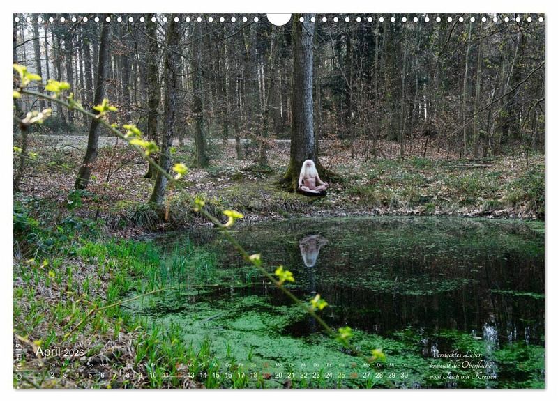 "Gewässer sind Blau, Bäume sind grün. Sitze und betrachte den Wandel der Dinge." Fru hat ein Jahr lang jeden Monat an einem Teich den "Wandel der Dinge" betrachtet, ein Haiku gemacht und ein Selbstporträt.