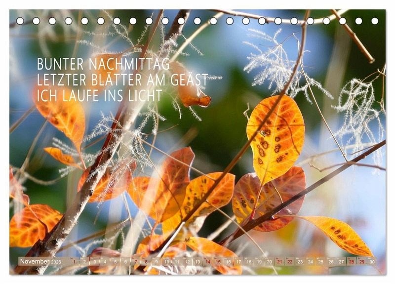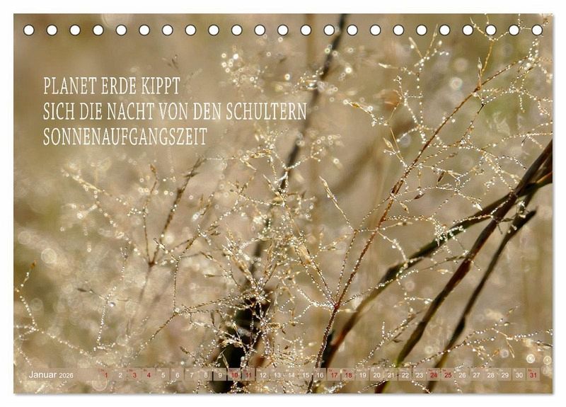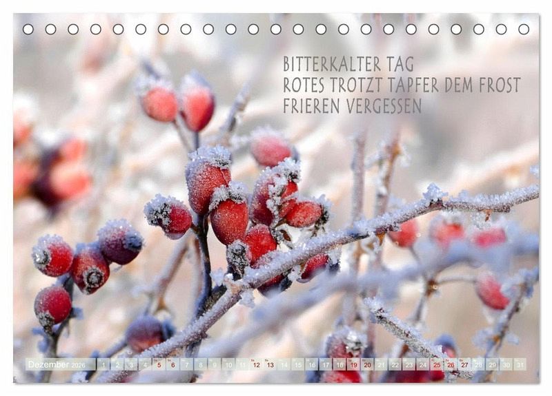 In diesem Kalender ergänzen sich Wort und Bild. Beides könnte jedoch im Sinne der Haiku-Idee einer Momentaufnahme auch für sich alleine stehen.