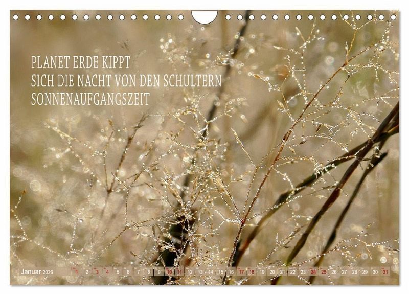 In diesem Kalender ergänzen sich Wort und Bild. Beides könnte jedoch im Sinne der Haiku-Idee einer Momentaufnahme auch für sich alleine stehen.