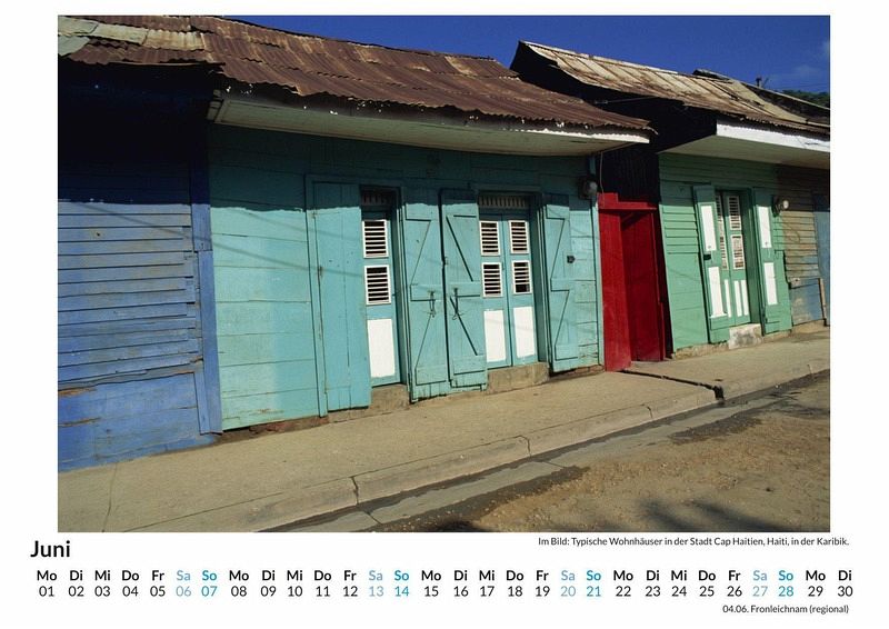 Entdecken Sie die faszinierende Schönheit Haitis mit unserem exklusiven Wandkalender! Lassen Sie sich Monat für Monat von 12 atemberaubenden Motiven verzaubern, die die einzigartige Kultur, Natur und Lebensfreude dieses karibischen Paradieses einfangen. Gedruckt auf hochwertigem, lichtbeständigem Bilderdruckpapier, bringt dieser Kalender die Farben Haitis in Ihr Zuhause. Nachhaltigkeit liegt uns am Herzen: Unsere Kalender werden in Deutschland auf FSC-zertifiziertem Papier produziert. Perfekt als Geschenk oder für die eigene Wand - holen Sie sich ein Stück Haiti in Ihr Leben und lassen Sie sich das ganze Jahr über inspirieren! Hochwertig Erleben Sie ein Jahr voller Eleganz mit unserem Premium-Fotokalender. Jedes der 12 Motive ist auf hochwertigem, lichtbeständigem Bilderdruckpapier gedruckt, um die Lebendigkeit jedes Bildes zu bewahren. Die robuste Spiralbindung gewährleistet Langlebigkeit und einfache Handhabung. Nachhaltig Unser Engagement für die Umwelt spiegelt sich in jedem Exemplar wider. Durch die Produktion auf Abruf reduzieren wir signifikant unseren Abfall. Wir verwenden ausschließlich umweltfreundliches, FSC-zertifiziertes Papier. Stolz gefertigt in Deutschland, achten wir bei unserer Logistik auf Klimaschutz, um unseren ökologischen Fußabdruck zu minimieren. Das ideale Geschenk Dieser Kalender ist das perfekte Präsent für jeden Anlass - ob Weihnachten, Geburtstage oder einfach als liebevolle Aufmerksamkeit zwischendurch. Geeignet für Freunde, Familie, Kinder und Erwachsene gleichermaßen, bereichert er jedes Zuhause mit seiner Vielfalt und Schönheit, unabhängig vom Alter der Beschenkten.