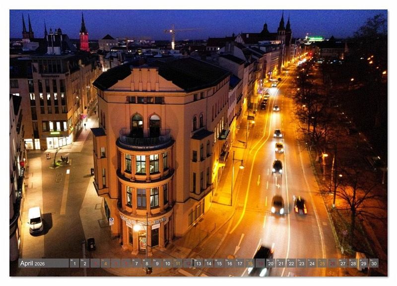 Zwölf kunstvoll inszenierte Drohnenbilder zeigen die Stadt , die im Licht der Straßenlaternen zu leuchten beginnt. Jede Seite dieses Kalenders ist eine Hommage an die Schönheit Halles bei Nacht - geheimnisvoll, leuchtend, still.