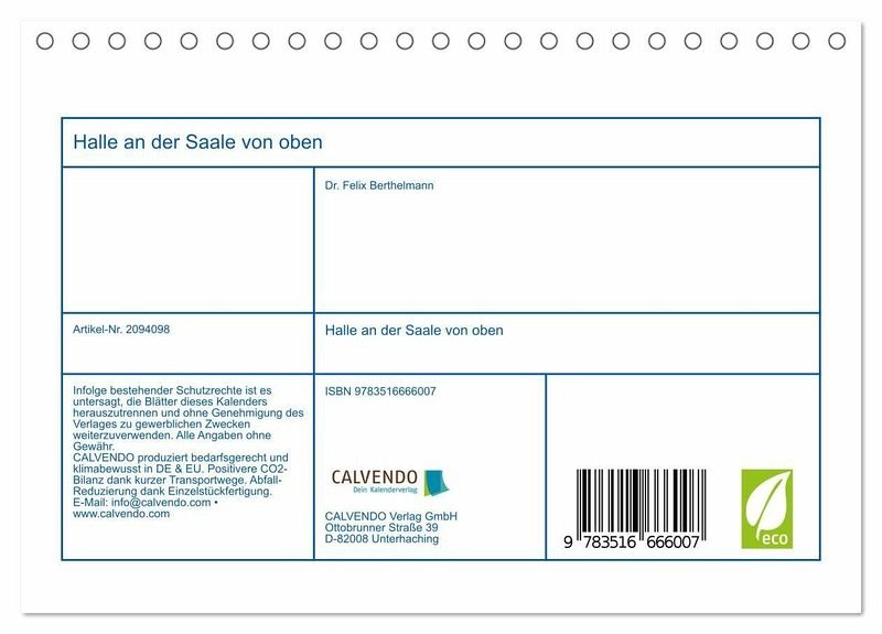 QUALITÄT - Hochwertiger Fotokalender mit 12 wunderschönen Motiven auf lichtbeständigem Bilderdruckpapier, robuste Spiralbindung.NACHHALTIG - deutliche Abfallreduzierung durch bedarfsgerechte Einzelstückfertigung, umweltfreundliches FSC-zertifiziertes Papier, Produktion in Deutschland, klimabewusste Logistik.PERFEKTES GESCHENK - Kalender für Freunde und Familie, für Kinder und Erwachsene, jung und alt, zu Weihnachten, Geburtstag oder zwischendurch.VIELFALT - Bildkalender in verschiedenen Formaten, z.B. DIN A5, DIN A4, DIN A3 sowie DIN A2. Ob Naturmotiv, Gemälde oder Fotos, ideal für ein persönliches Wohlfühlambiente.Neue Blicke auf die Händelstadt Halle von Autor(in): Hallenser