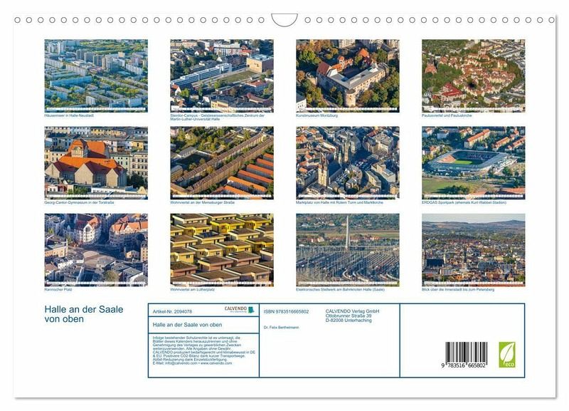 QUALITÄT - Hochwertiger Fotokalender mit 12 wunderschönen Motiven auf lichtbeständigem Bilderdruckpapier, robuste Spiralbindung mit Aufhängebügel.NACHHALTIG - deutliche Abfallreduzierung durch bedarfsgerechte Einzelstückfertigung, umweltfreundliches FSC-zertifiziertes Papier, Produktion in Deutschland, klimabewusste Logistik.PERFEKTES GESCHENK - Kalender für Freunde und Familie, für Kinder und Erwachsene, jung und alt, zu Weihnachten, Geburtstag oder zwischendurch.VIELFALT - Bildkalender in verschiedenen Formaten, z.B. DIN A5, DIN A4, DIN A3 sowie DIN A2. Ob Naturmotiv, Gemälde oder Fotos, ideal für ein persönliches Wohlfühlambiente.Neue Blicke auf die Händelstadt Halle von Autor(in): Hallenser