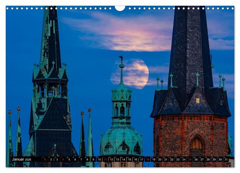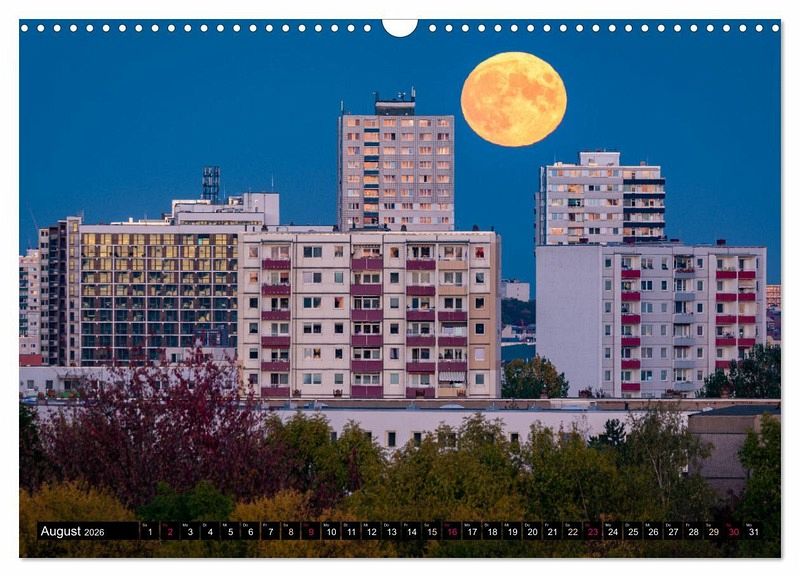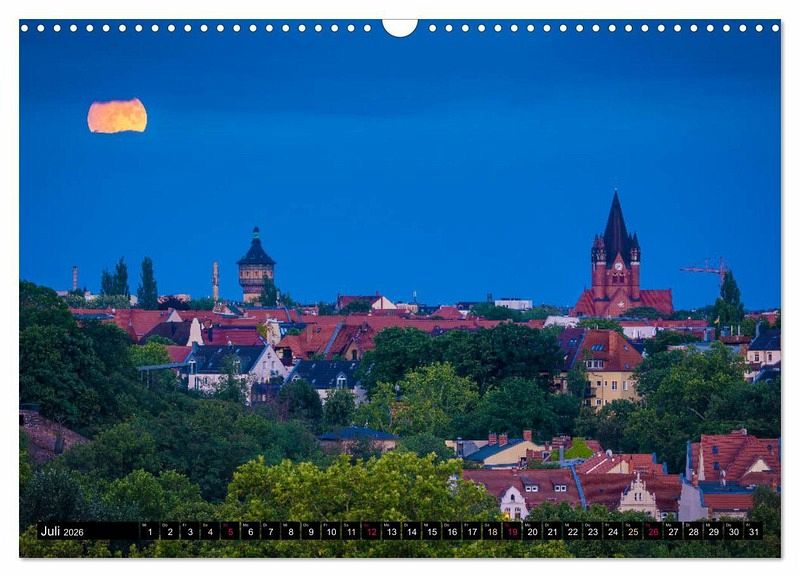 Für diesen Kalender ist Martin Wasilewski über mehrere Jahre dem Mond in der Saalestadt Halle gefolgt um ihn mit bekannten Stadtszenen zu komponieren. Die gezeigten Fotografien sind lange durchdacht und benötigten zum Teil mehrere Anläufe.
